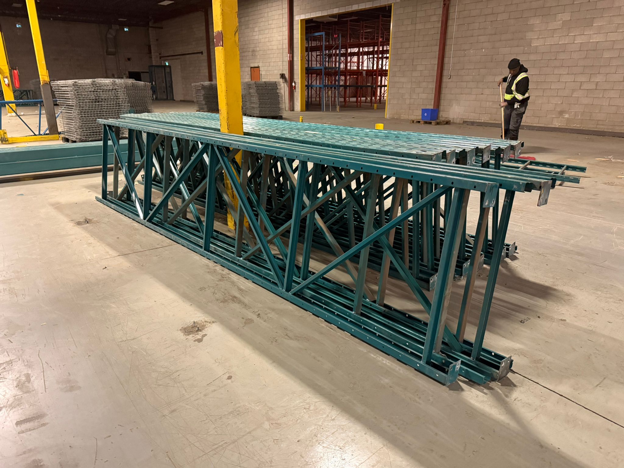 Heavy-duty 15 ft pallet rack uprights designed for industrial warehouse storage systems. These steel upright frames provide strong vertical support for pallet rack beams and allow multiple storage levels for palletized goods. The 36" depth makes them compatible with standard pallet rack beam systems commonly used in warehouses and distribution centers. Built from reinforced steel with cross-bracing, these uprights provide durable and stable support for high-capacity pallet storage. Ideal for expanding an existing pallet rack system or building new warehouse storage rows. Specifications Type: Pallet Rack Upright Frame Height: 15 ft Depth: 36 in Material: Heavy-duty steel Color: Green Style: Structural pallet rack frame with cross bracing Application: Warehouse / industrial storage