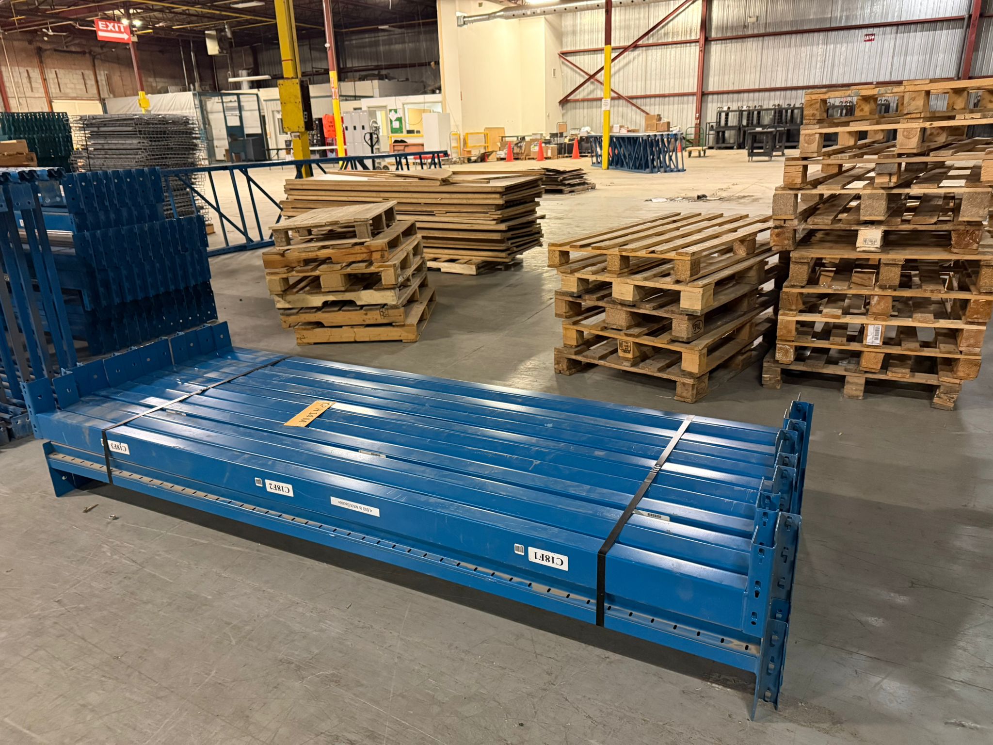 Heavy-duty 96-inch pallet rack beams designed for warehouse storage systems. These steel step beams connect pallet rack uprights to create horizontal load levels for pallet storage. The 4" beam face provides strong load capacity and is compatible with standard pallet rack systems. These beams are commonly used in warehouses, distribution centers, and industrial storage facilities. Ideal for expanding existing pallet rack systems or building new pallet storage rows. Specifications Type: Pallet Rack Beam Length: 96 in (8 ft) Beam Face: 4 in Material: Heavy-duty steel Color: Blue Connection: Hook-style beam connector Application: Warehouse pallet racking