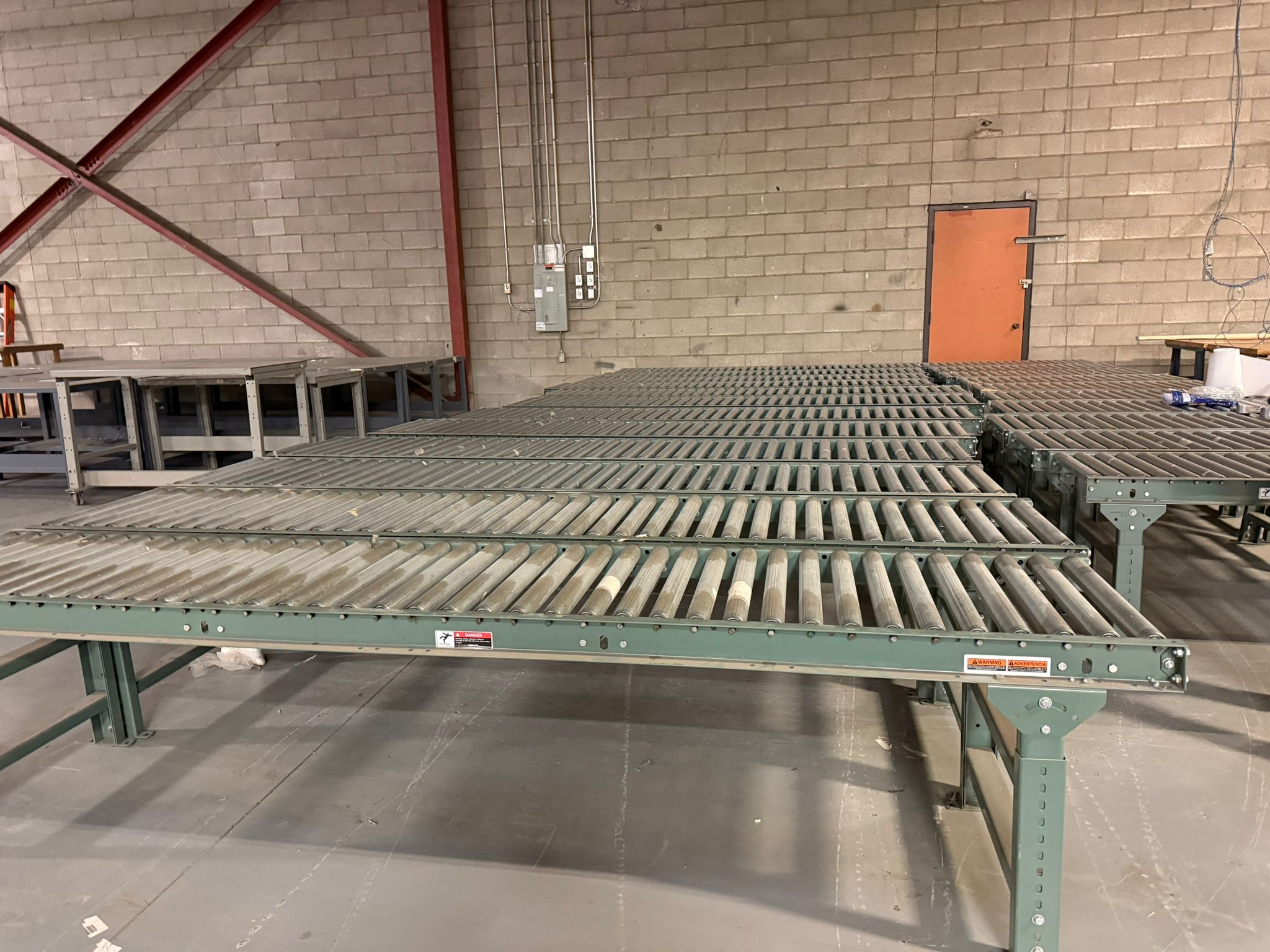Heavy-duty gravity roller conveyor section designed for efficient material handling in warehouses, distribution centers, and manufacturing facilities. This conveyor uses free-spinning steel rollers to allow boxes and cartons to move smoothly without powered motors. The 120-inch length and 24-inch width make it ideal for medium to large cartons, totes, and packages. Built with a reinforced steel frame and adjustable legs for stable installation in industrial environments. Perfect for packing lines, shipping stations, loading areas, and warehouse sorting systems. Legs Included. Specifications Type: Gravity Roller Conveyor Length: 120 in (10 ft) Width: 24 in Roller Type: Steel rollers Frame Material: Heavy-duty steel Support: Adjustable steel legs Operation: Non-powered gravity conveyor
