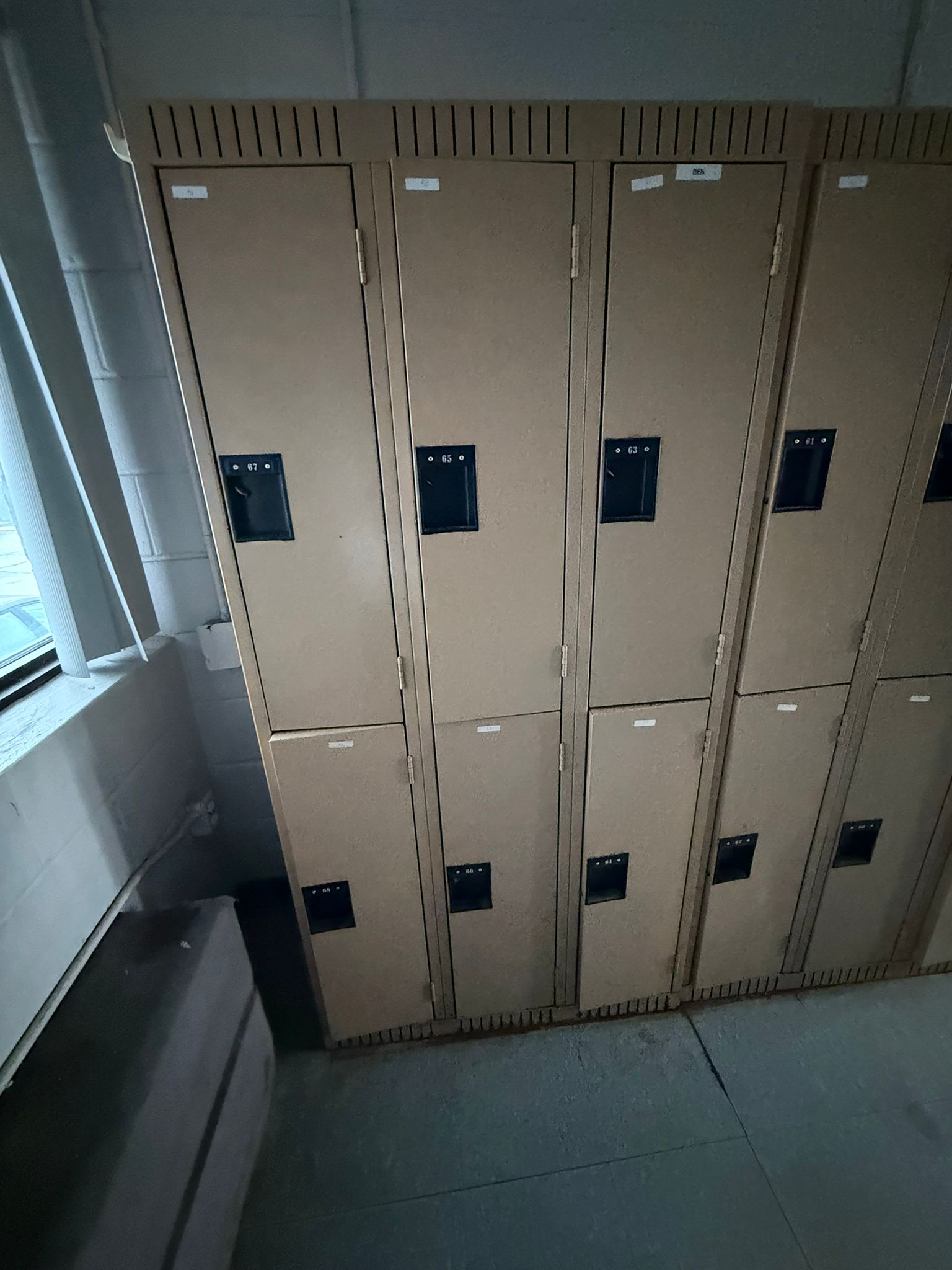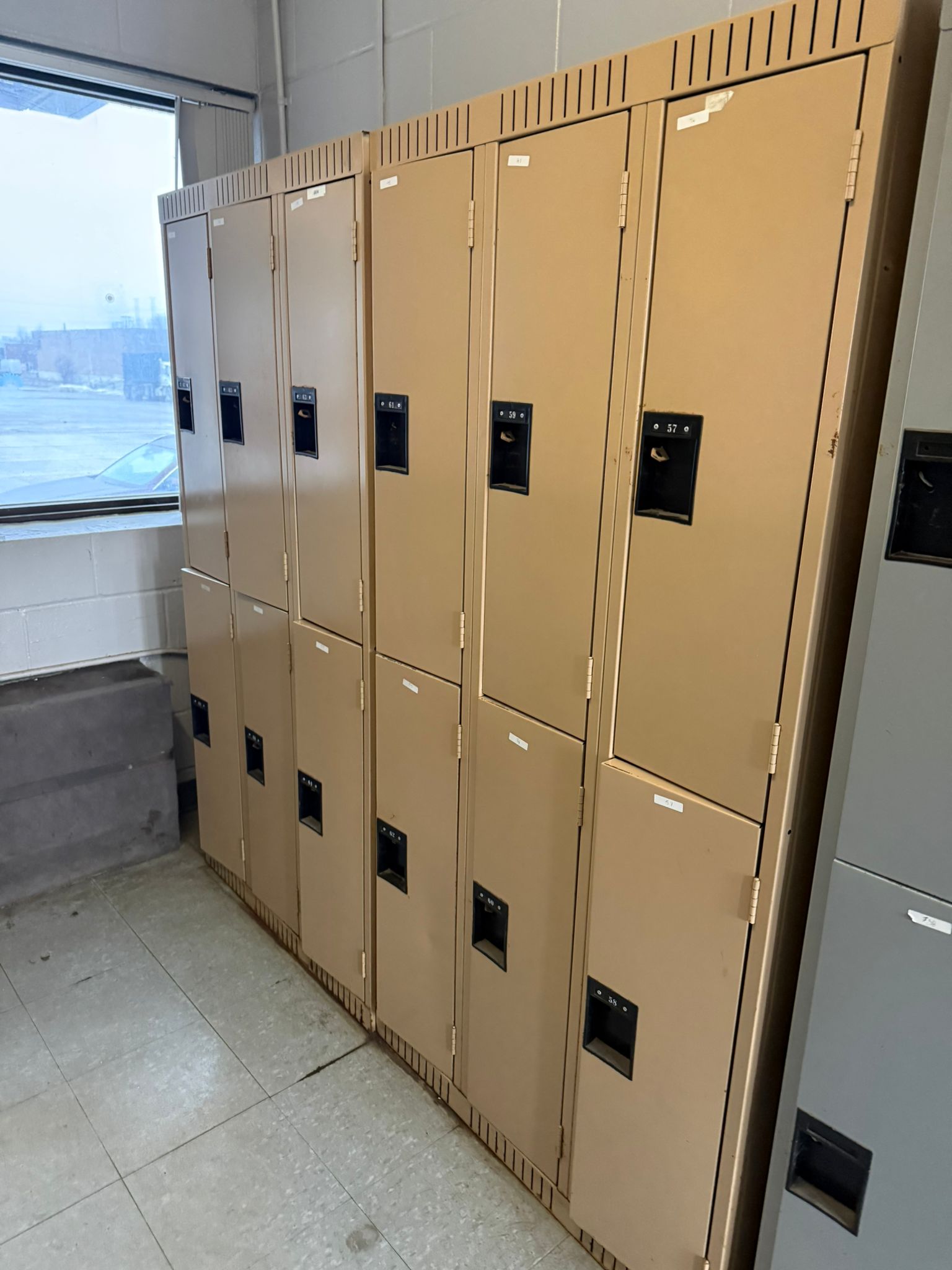 Heavy-duty 6-door steel locker unit designed for secure storage in warehouses, factories, gyms, schools, and industrial workplaces. The locker features a double-tier configuration with six individual compartments, allowing multiple users to store personal belongings, tools, and safety gear. Each locker door includes ventilation slots for airflow and a recessed handle suitable for padlocks, providing secure storage while maintaining durability for high-traffic environments. Ideal for employee locker rooms, warehouses, construction sites, and industrial facilities. Specifications Type: Steel locker unit Configuration: 6 compartments (double tier) Material: Heavy-duty steel Color: Beige / tan Ventilation: Top and bottom air vents Lock Type: Padlock compatible recessed handle Design: Vertical locker configuration